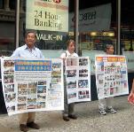 [Minh Huệ] Phóng viên của Minh Huệ Su Jing báo cáo rằng từ đầu tháng 8 năm nay, các đệ tử Pháp Luân Công đã từ nhiều nơi đến Nữu Ước, cùng với các đệ tử địa phương tổ chức hàng loạt những cuộc triển lãm, giảng rõ sự thật trên các đường phố đông đúc tại Manhattan. Tại một vài địa điểm, các đệ tử đã tổ chức các hoạt cảnh chống tra tấn mà đã thu hút được sự chú ý của rất nhiều người. Những cuộc hoạt cảnh này phô bày sự dã man của chính sách khủng bố Pháp Luân Công của Giang và đám hầu đoàn đối với các đệ tử Pháp Luân Công tại Trung quốc.