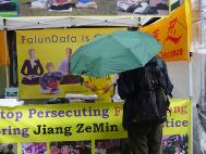 Tôi phân phát tài liệu cho mọi người và cũng mở máy thu băng cho những bài như “Phổ độ” và Tế thế”. Một số người ký tên vào bảng thỉnh nguyện chấm dứt chính sách khủng bố và ủng hộ Pháp Luân Công sau khi họ đọc những tài liệu đang trưng bày và lời giải thích của tôi. Một số hỏi tôi nếu chúng tôi cần tiền ủy lạo. Tôi nói với họ chúng tôi không nhận tiền ủy lạo. Chúng tôi chỉ muốn nói với họ về sự thật Pháp Luân Công.