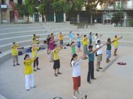 [Viên Minh] Vào ngày 13 tháng 8 năm 2004, Thế vận hội mùa hè sẽ được khai mạc tại Athens, Hy lạp. Trước ngày khai mạc, có rất nhiều đệ tử Pháp Luân Công trên thế giới đã đến Athens để tham gia nhiều hoạt động khác nhau trong thành phố bận rộn này. Mỗi buổi sáng, các đệ tử tập trung tại Công trường Elefterias (còn gọi là Công trường Tự do) để tham dự tập Công Pháp buổi sáng. Công trường này nằm trong khu vực cư trú của nhiều người Trung quốc tại Athens. Cùng với nhiều người Hy lạp tại địa phương, có nhiều người Trung quốc đã đến và xem những động tác mềm mại và thanh lịch của các bài Công Pháp Pháp Luân Công và tìm hiểu thêm về môn thiền tập ôn hoà này. Rất nhiều người dừng lại xem và xin tài liệu Pháp Luân Công. Người dân Hy lạp đón nhận Pháp Luân Công trong tinh thần muốn học hỏi.