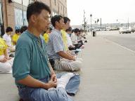 Chúng tôi tự nguyện ngồi thành hàng bên ngoài toà lãnh sự và phát Chính niệm mỗi 30 phút, trong khi đó chúng tôi liên tục tập Công Pháp. Các đệ tử từ Đài loan ngồi vào bên trái thành 3 hàng, và có một số đệ tử đứng phía sau đang giăng cao các biểu ngữ. Hầu hết các đệ tử Đài loan vừa mới đi Hoa thịnh đốn dự Pháp Hội, và sau đó đi Boston dự cuộc diễn hành, và họ trực chỉ Nữu Ước ngay sau đó. Lịch trình bận rộn của họ không làm cho họ bị ảnh hưởng tinh thần, Chính niệm và lòng đại từ bi của họ. Chính niệm của các đệ tử có thể trừ diệt tất cả tà ác, và không có bức tường bắng thép nào có thể ngăn cản được sự thành công của sự mệnh của chúng ta.
