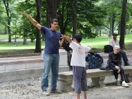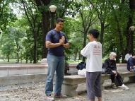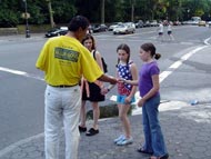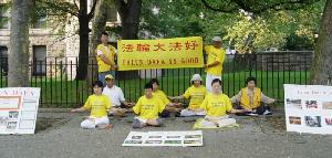 Hôm nay chúng tôi cũng trở lại Central Park. Khi chúng tôi đến đó, thì nhóm từ Toronto khác đã đến đó trước chúng tôi và đang tập Công Pháp hơn 1 tiếng đồng hồ rồi. Vì thế chúng tôi đến cổng vào khác cũng có một mảnh đất rộng. Chúng tôi dựng các bảng hiệu và treo biểu ngữ. Hai đệ tử phân phát tài liệu và số còn lại tập Công Pháp và phát Chính niệm. Ảnh hưởng của Chính niệm rất lớn. Hầu hết những người qua lại đều nhận tài liệu, và rất nhiều dừng lại tìm hiểu thêm, đó là những gì mà chúng tôi mong muốn.
