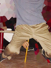 Hai tay của người đệ tử bị khoá chặt vào phần trên của giường sắt, tách rời ra, và hai chân anh ta bị khóa vào phần dưới của cái giường. Sau đó anh ta bị lật vào một cái ghế, mà bắt buộc người đệ tử ngồi trên một chân ghế bằng sắt. Những tên công an đút một cái cây gỗ nhọn giữa nền nhà và hậu môn của ngưòi đệ tử. Tất cả sức nặng đều đè trên cây gổ nhọn và chân ghế sắt. Cách này rất là đau đớn, nếu phải ngồi trong một thời gian dài. Còn cách khác nữa là, chúng ép người đệ tử ngồi trên một thanh gỗ treo lơ lửng.