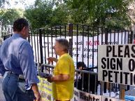 [Minh Huệ] Ngày 23 tháng 9 năm 2004 là ngày thứ tư trong chương trình một tuần thỉnh nguyện trước trụ sở Liên Hiệp Quốc. Cũng là ngày thứ tư mà các đệ tử khắp nơi trên thế giới thỉnh nguyện chấm dứt chính sách khủng bố Pháp Luân Công tại Trung quốc. Các đoàn xe của các nhà lãnh đạo và phóng viên báo chí, tivi qua lại tấp nập. Các đệ tử biểu diễn Công Pháp, triển lãm chống tra tấn và lao động nô lệ là thu hút được nhiều sự chú ý của các đại diện Liên Hiệp Quốc. Một số đông cũng nhận lấy tài liệu giảng rõ sự thật từ các đệ tử.