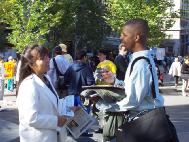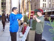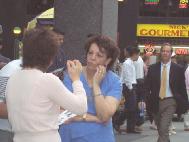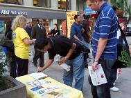 Khi chứng kiến những hoạt cảnh, tranh ảnh chống tra tấn, rất nhiều khách bộ hành dừng lại để tìm hiểu sự thật về Pháp Luân Công và ký tên vào bản thỉnh nguyện. Một phụ nữ nhấn mạnh rằng, những ai có trách nhiệm về chính sách khủng bố Pháp Luân Công cần phải được đưa ra trước công lý.