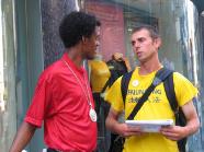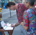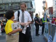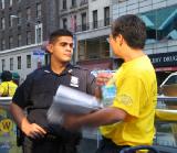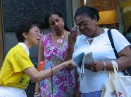 Một số đệ tử cũng làm như thế tại các ngã tư, và kết quả rất là tốt. Làm như thế, chúng ta sẽ giảm bớt số người vất các tờ bướm. Các đệ tử đến từ các vùng khác, làm ơn để ý: Dân Nữu ước đôi khi từ chối nhận tờ bướm vì họ hiểu lầm tờ bướm để quảng cáo trên thị trường hay yêu cầu bố thí. Nếu chúng ta yêu cầu họ đọc và hiểu về Pháp Luân Công, có thể sẽ có nhiều người nhận hơn.