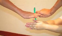 Bàn chải đánh răng được dùng như dụng cụ tra tấn thường là rất dẹp. Bọn cai ngục đút bàn chải vào giữa 2 ngón tay và xoáy mạnh, và nhanh. Đòn này thường được dùng bởi các người đệ tử đã ly khai Pháp Luân Công (hay gọi là “Cải tạo”) và bây giờ tham gia vào việc hành hạ các đệ tử khác . Các “Cải tạo” này làm như vậy để được bọn cai ngục hứa là không tra tấn chúng nữa và giảm án cho chúng. Họ cũng được gọi là “Ăng tên” trong baì này. Một tên ăng tên cố nắm chặt 2 ngón tay của người đệ tử vào bàn chải trong khi đó một tên ăng tên khác xoay bàn chải cho đến khi máu, thịt của người đệ tử xé toát ra cho đến khi lòi xương.