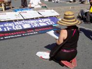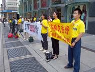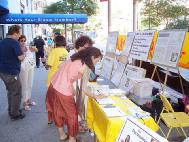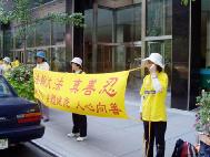 | Các đệ tử Pháp Luân Công giương cao biểu ngữ | Ký tên vào bản thỉnh nguyện ủng hộ Pháp Luân Công |