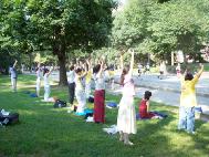 | Các đệ tử Pháp Luân Công biểu diễn các bài Công Pháp tại Central Park | Biểu diễn Công Pháp |