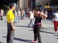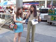 | Một đệ tử đang giảng rõ sự thật về Pháp Luân Công trên đường phố | |