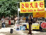 Đệ tử Dai Zhizhen từ Úc châu và con gái 4 tuổi của chị là Fa Du (Pháp Độ) đến Nữu ước để nói với mọi người về câu chuyện đau thương của chồng chị người đã bị tra tấn đến chết vì không chấp nhận ly khai với Pháp Luân Công tại Trung quốc. Chị Dai kêu gọi mọi người hãy quan tâm đến những vị phạm nhân quyền trầm trọng của chính quyền Trung quốc đối với các đệ tử Pháp Luân Công và kêu gọi giúp đỡ chấm dứt chính sách khủng bố này.