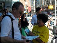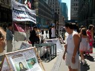 [Minh Huệ] Vào ngày 21, 22 tháng 8 năm 2004 (ngày cuối tuần), nhiều đệ tử tiếp tục những cuộc triển lãm và hoạt cảnh chống tra tấn với những người đóng vai các đệ tử Pháp Luân Công bị tra tấn tại Trung quốc trên đường phố Manhattan thuộc thành phố Nữu ước, để vạch trần chính sách khủng bố Pháp Luân Công tại Trung quốc.