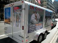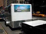 Một chiếc xe dùng làm nhà ở, màu trắng từ Hoa thịnh đốn đến với những bức hình, tài liệu giảng rõ sự thật thu hút được rất nhiều khách bộ hành. Chiếc xe này chạy vòng quanh Nữu ước, và nhiều khách bộ hành và những người lái xe khác biết được sự thật về Pháp Luân Công. Người đệ tử lái chiếc xe này nói rằng anh ta dự định liên lạc với các đệ tử khác để cho chiếc xe này có thể chạy quanh thành phố Manhattan, không chỉ vào những ngày cuối tuần, nhưng ngay cả những ngày trong tuần. Anh ta cũng hy vọng rằng sẽ có thêm những chiếc xe như vậy để mang đến cho người dân Nữu ước sự thật về Pháp Luân Công.