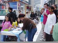 [Minh Huệ] Cuộc triển lãm tại quảng trường Times Square, tôi phân phát tài liệu và giải thích sự thật về Pháp Luân Công cho khách bộ hành.