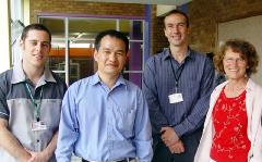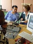 David Lang và Bác sĩ Tâm lý Xã hội học Robinson (thứ hai từ phải) và một bác sĩ thực tập (đầu tiên từ trái) tại Chris Hani Baragwanath Hospital